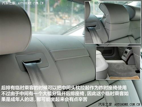 5座版車(chē)型后排中央可乘坐一名成員,靠背可以拉出一個(gè)碩大的頭枕為中間的乘員提供頸部的放松與安全保護(hù),但是由于傳動(dòng)軸的存在地板上的凸起過(guò)于嚴(yán)重,所舒適性會(huì)有折扣;中間扶手寬大厚實(shí),這也是豪華行政級(jí)轎車(chē)的最基本要素。