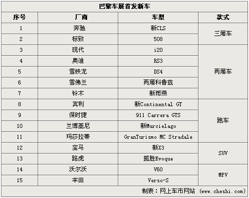2010巴黎車展將于9月底正式開幕,本屆車展新車云集,數(shù)十款新車將在車展全球首發(fā),包括奔馳、寶馬、標(biāo)致等歐洲本土廠商,也有雪佛蘭、豐田等海外廠商。而這次在開幕前我們所盤點(diǎn)的是巴黎車展首發(fā)后將引入國(guó)內(nèi)銷售的新車,預(yù)計(jì)將有15款首發(fā)車后續(xù)引入。