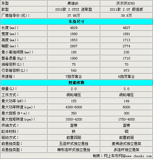 兩款車在車身尺寸上的差異并不很大,軸距方面也僅有20多mm的差距。而在動力方面,奧迪Q5可以為使用者提供155KW的最大功率和350Nm的最大扭矩輸出,這一項要比XC60 149/300的表現(xiàn)要強出不少。另外,奧迪Q5全系車型均采用奧迪家族傳統(tǒng)4驅(qū)技術(shù)quattro,而XC60最低配版本僅為前驅(qū)。