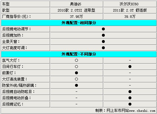 外觀方面,兩款車都配備了全景天窗,十分符合主流消費需求。兩款車都未配備氙氣大燈和大燈清洗功能,而奧迪Q5可以選裝這兩項配置,XC60則不能。不過XC60配備了日間行車燈,而奧迪Q5這一標(biāo)志性的產(chǎn)物卻只能選配。