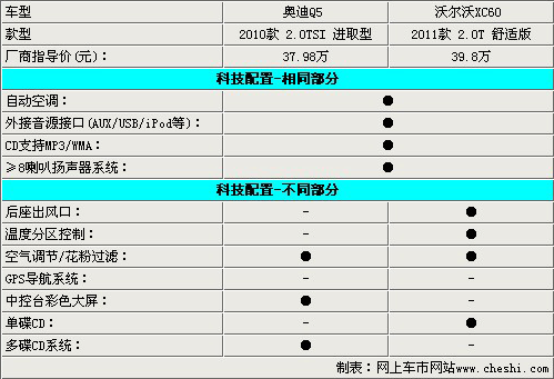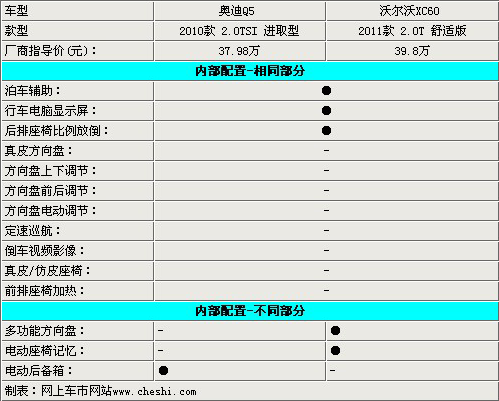 兩款車除了在安全方面的較量比較均衡以外,其他方面基本上都是奧迪Q5略勝一籌,主打安全牌的沃爾沃,有必要在其他配置方面多下工夫,就最低配而言,價(jià)格方面還是沒有什么優(yōu)勢(shì)的。