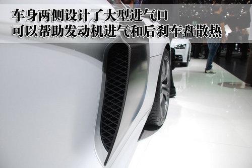 奧迪R8 GT與普通版R8在車身尺寸上并沒有變化,依然是一付短小精悍的風(fēng)格。但奧迪R8 GT增加的那些運(yùn)動(dòng)套件卻使這款車更加強(qiáng)大。車身兩側(cè)最為顯眼的就是這個(gè)大型進(jìn)氣口,可以幫助發(fā)動(dòng)機(jī)進(jìn)氣,并且由于主后剎車盤散熱。