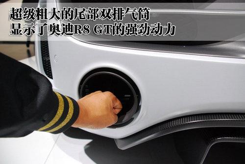 奧迪R8 GT的尾部采用熏黑后尾燈設計,造型風格與普通版相似,看上去非常運動。而且這款車的尾部還配備了碳纖維的擾流擴散器,在起到空動作用的同時也能進一步減輕車重。奧迪R8 GT尾部配備了超級粗大的雙排氣筒,每個排氣筒內(nèi)部都有兩個排氣管,顯示了奧迪R8 GT所擁有的強大動力。