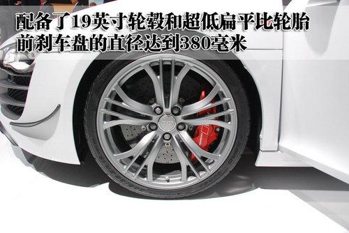 奧迪R8 GT配備的是19英寸輪轂,并且采用超寬低扁平比輪胎,可以加大輪胎對地面的摩擦力,并且提高車輛在高速行駛中的平穩(wěn)性。奧迪R8 GT的前輪采用通風剎車盤,直徑能夠達到380毫米,而且紅色卡鉗看上去也非常運動。