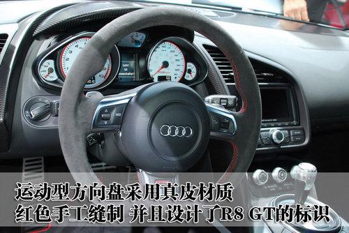 奧迪R8 GT深色調(diào)的內(nèi)飾風(fēng)格充滿了運(yùn)動(dòng)元素,車內(nèi)壁很多的都是選用輕量化的材料打造,而且內(nèi)飾的材料都非常柔軟,避免在車內(nèi)出現(xiàn)磕磕碰碰時(shí)受傷。奧迪R8 GT的運(yùn)動(dòng)型方向盤配備了換擋撥片,采用真皮材質(zhì),并且采用手工縫制。
