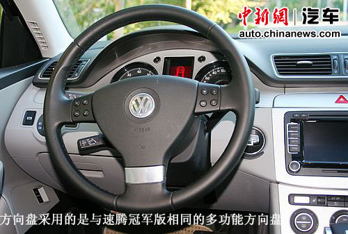 方向盤還是沿用了大眾的三幅方向盤,外圈以真皮包裹手感還算過得去,方向盤兩側(cè)帶有多功能按鍵,可較為方便的對音響系統(tǒng)等進行控制,但由于按鈕較小使用起來并不是很舒服,不過也許在用慣了的情況下還算好用。