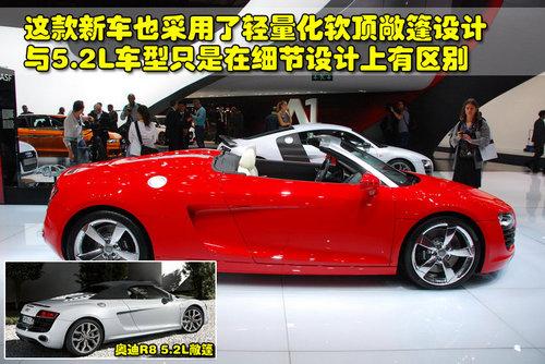 作為奧迪品牌旗下的超級跑車,R8敞篷版所搭載的5.2升FSI V10發(fā)動機已經(jīng)讓很多人非常動心了。隨后,奧迪R8敞篷版將降低門框,推出搭載4.2升FSI V8引擎的新產(chǎn)品。在今年的巴黎車展上,奧迪R8 4.2L敞篷版已經(jīng)正式亮相,隨后將首先在歐洲開售,預(yù)計價格約合人民幣113萬元左右。