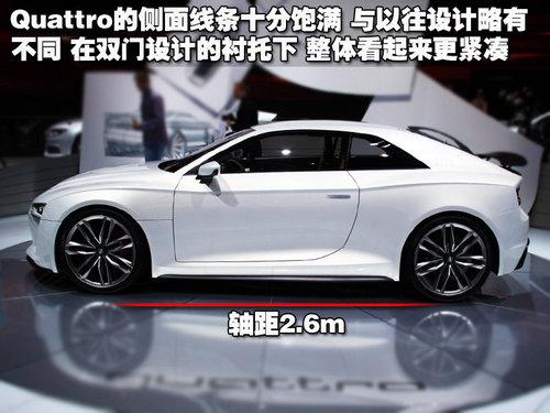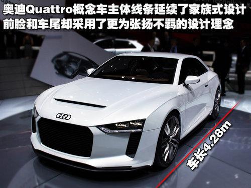 奧迪Quattro概念車在巴黎車展首發(fā),作為奧迪展臺上一款備受矚目的車型,奧迪Quattro概念車集奧迪家族各種傳統(tǒng)元素于一身,并且在某些設計環(huán)節(jié)上還做出了不小的創(chuàng)新。奧迪Quattro概念車的誕生是為了紀念奧迪Quattro技術研發(fā)成功30周年,這款十分獨特的掀背轎跑車有望量產(chǎn),不過時間暫時尚不確定。