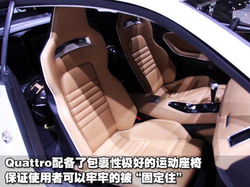 奧迪Quattro概念車兩個(gè)座椅均采用了桶形運(yùn)動(dòng)座椅,并且包裹性十分好。主駕和副駕人員坐在上面可以盡情享受駕駛帶來(lái)的樂(lè)趣,根本不用為“被拋出”所擔(dān)憂。