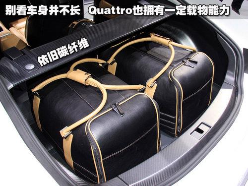 奧迪Quattro概念車除了擁有超強(qiáng)的運(yùn)動(dòng)能力外,儲(chǔ)物能力同樣并不遜色,雖然是一款掀背車,奧迪Quattro概念車行李箱依舊可以放下如此兩個(gè)大包,絕對(duì)夠用。