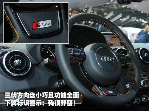 方向盤是車主最長接觸愛車的地方,A1也把這里當(dāng)作彰顯它特堵特性的位置。真皮包裹的質(zhì)感很棒,橙色的縫線經(jīng)過內(nèi)側(cè)輪廓得到強(qiáng)化。兩個(gè)側(cè)翼設(shè)計(jì)有多功能按鍵,為用戶提供了方便安全的操作,下翼吧“S line”標(biāo)識再次嵌入,時(shí)刻提醒駕駛者這臺(tái)A1擁有著不平凡的身份和勁道。