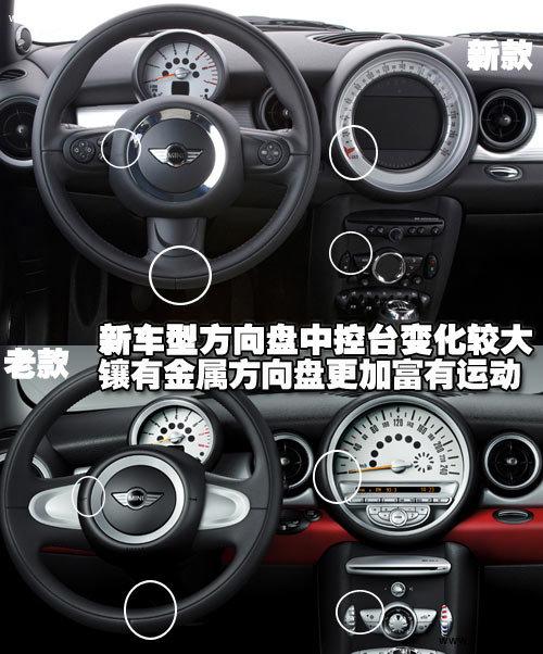 2011款MINI Cooper在內飾方面更加運功,換裝了三輻式多功能運動方向盤,中控臺上部碩大車速表中央增加了液晶導航顯示屏。音響控制被移至下方的中控臺之上。所有車型的音頻系統(tǒng)都配備了一個可兼容MP3的CD播放器和一個AUX IN連接裝置。