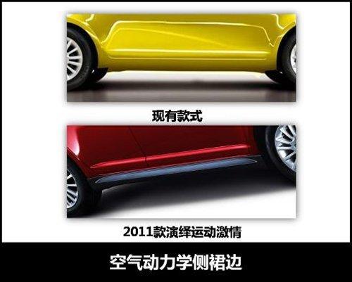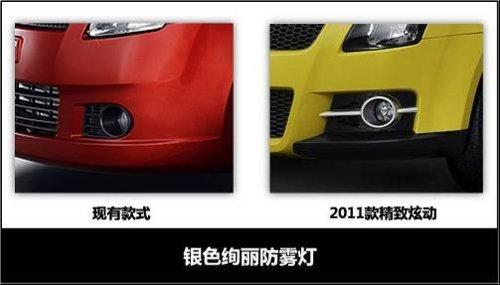 2011款雨燕在外型上與現(xiàn)款車型相比有了很大突破,甚至能夠稱之為運動款,運動元素遍布整個車身。前大燈、霧燈裝飾、前保險杠、進(jìn)氣格柵均進(jìn)行了重新設(shè)計。前臉上巨大的進(jìn)氣口和黑底的前大燈顯得酷勁十足且更具侵略性;霧燈區(qū)域的變化也很搶眼,原本與條紋格柵相一致的黑色霧燈經(jīng)過銀色裝飾后,視覺沖擊力更強(qiáng)。車身側(cè)面增加了空氣動力學(xué)側(cè)圍裙邊,動感魅力更加明顯。