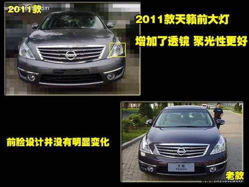2011款新天籟在外觀方面沒(méi)有進(jìn)行大規(guī)模的調(diào)整,僅在細(xì)節(jié)部分作出了修改。在前進(jìn)氣格柵部分,新款車型的鍍鉻邊框進(jìn)行了加粗,使前臉顯得更加的犀利。在前大燈部分,這款新車增加透鏡,聚光效果得到提升,外觀更凸顯大氣。