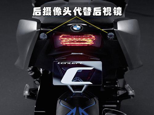 從正面看你可能會(huì)把Concept C誤認(rèn)為一輛街道摩托跑車,而實(shí)際上這是由于它借鑒了寶馬重型摩托車的諸多設(shè)計(jì)風(fēng)格。車頭采用LED大燈,這頗有點(diǎn)汽車的風(fēng)范。摩托車儀表盤被一塊大的液晶屏取代,上面可以實(shí)時(shí)顯示各種系統(tǒng)信息。如果您眼神夠犀利的話會(huì)發(fā)現(xiàn)這是一臺(tái)沒有后視鏡的摩托車,不過那只是假象,在尾部并排安裝有兩個(gè)攝像頭,可以把后方圖像實(shí)時(shí)傳送至儀表臺(tái)屏幕。