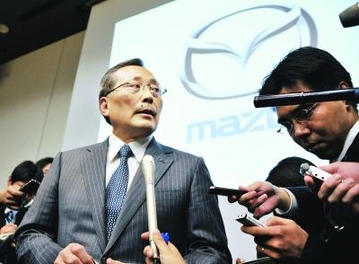 圖為日本馬自達(dá)汽車公司總裁山田憲昭18日在東京出席記者招待會(huì)的情形。該公司當(dāng)天宣布,美國(guó)福特汽車公司對(duì)其持股比例將從11%降至3.5%,這將使前者喪失馬自達(dá)最大股東身份。據(jù)悉,福特自1979年以來(lái)一直是馬自達(dá)的最大股東,一度擁有馬自達(dá)超過(guò)1/3的股份,自2008年全球金融危機(jī)爆發(fā)以來(lái)開(kāi)始減持馬自達(dá)股份。