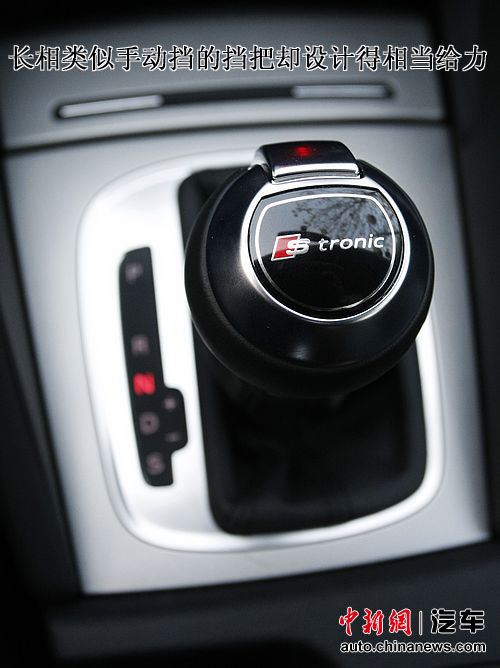 S tronic 7速雙離合變速器同樣是老面孔,但是這個長相類似手動擋的擋把卻設計得相當給力,手感和外觀都足夠出色。因為檔位多,齒比綿密,所以日常駕駛的時候換擋相當頻繁,走不出多遠就發(fā)現(xiàn)已經(jīng)掛在7檔上了。在北京這樣擁堵的城市里走走停停,看著檔位頻繁跳來跳去,讓人不禁為變速箱的耐久度捏一把汗。拋開這一點,這款變速箱在平順性和經(jīng)濟性上基本無可挑剔。