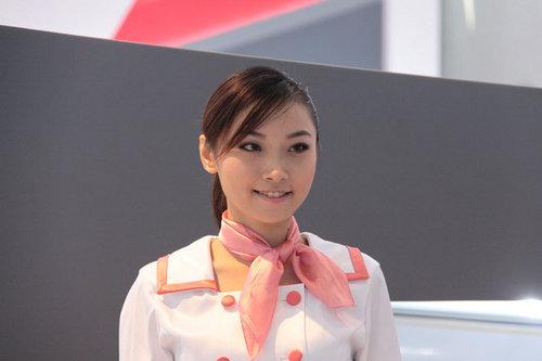 當(dāng)然了作為國際車展洋模特的少不了的,看這位美女開心的,不知道是什么事情讓她在彩排時(shí)這么高興。