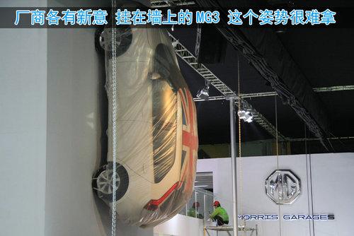 為了吸引觀眾的眼球,各個廠商也費勁了心思布展,雪佛蘭看上了歷年MINI的絕招,就是把車掛在墻上,而Smart則直接將車擺上了房頂。這使我不得不去聯(lián)想下屆車展會不會倒掛在房頂上?車展吸引人的地方有很多,其中就包括我們在這里可以親眼看到一些神車,例如我們眼前的尚酷R,這個版本在中國來說目前沒有銷售。