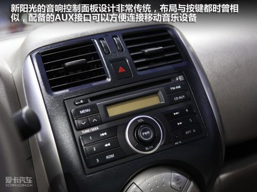 新陽光的音響控制面板設(shè)計(jì)十分傳統(tǒng),布局與按鍵都與現(xiàn)在主流的日產(chǎn)車型一致,并沒有什么新鮮感。倒是圓形的自動(dòng)空調(diào)控制面板設(shè)計(jì)的非?蓯郏切玛柟鈨(nèi)飾的一大亮點(diǎn),而且操作起來沒有任何難度。新陽光只有副駕駛位置配備了遮陽板化妝鏡,而且沒有配備照明燈,讓人有些不解。