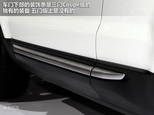 車身側(cè)面線條是其設(shè)計的一大看點,凸起的腰線挺拔清晰,逐漸上揚貫穿整個車身。前翼子板處的散熱口真正發(fā)揮作用的面積很小,更多的是為提升美觀服務(wù)。車門下部的裝飾條是三門Coupe版的獨有的裝備,五門版上是沒有的。