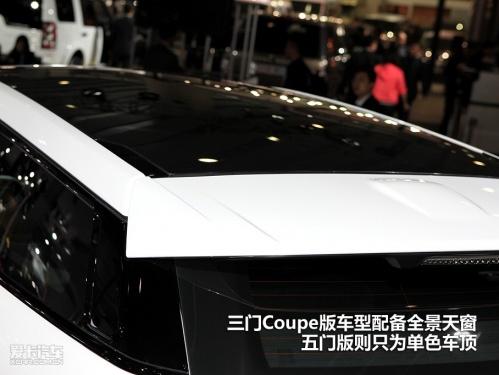 車頂采用懸浮式錐形設(shè)計,此處對整車展現(xiàn)的姿態(tài)起到了決定性的作用,令其風(fēng)格與一些運動型跨界車型異曲同工,三門Coupe版車型配備全景天窗,五門版則只為單色車頂。