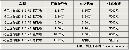 時(shí)尚的外觀,靈動(dòng)的造型,馬自達(dá)2推出以來受到無數(shù)型男型女的追捧,同時(shí)日系車一貫科技含量較高,使馬自達(dá)2成為時(shí)尚人士的數(shù)碼玩具。目前根據(jù)網(wǎng)上車市價(jià)格監(jiān)測(cè)系統(tǒng)顯示,馬自達(dá)2的價(jià)格近期出現(xiàn)了一定幅度的松動(dòng),具體車型以及價(jià)格如下: