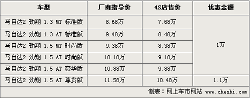 筆者從長安馬自達經(jīng)銷商處了解到,目前兩廂車最高優(yōu)惠可到1萬元,其中標準版和超值版能優(yōu)惠8000元,這兩類型車型相比銷量較多,尊貴版和豪華版優(yōu)惠1萬元,只有黑色和灰色現(xiàn)車,受大眾喜歡的紅色等車型需要等待10天時間才能提車,訂金為1000元。