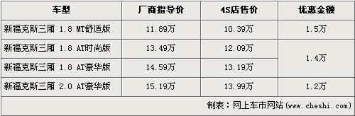 ?怂箲{借出色的外觀設(shè)計及極佳的操控性贏得了市場的認(rèn)可,在銷量方面一直保持迅猛的勢頭。尤其新款?怂沟纳鲜校桓膬(nèi)飾略顯粗糙的詬病,使得福克斯更趨于完美。福克斯采用了沃爾沃S40底盤,將操控進(jìn)行到底,這一優(yōu)勢博得全世界的掌聲,名副其實(shí)成為了這個級別的標(biāo)桿車型。據(jù)網(wǎng)上車市價格系統(tǒng)檢測顯示,目前三廂?怂谷祪(yōu)惠1.5萬元,具體車型價格請看下表: