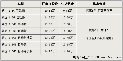 東風(fēng)日產(chǎn)的兩款主力經(jīng)濟(jì)型轎車騏達(dá)、頤達(dá)于05年上市,并于07底、08年初兩款車完成了小改款及升級(jí)方案,憑借其寬敞的車內(nèi)空間以及出色的動(dòng)力性能博得了不少消費(fèi)者的喜愛(ài)。根據(jù)網(wǎng)上車市價(jià)格監(jiān)測(cè)系統(tǒng)顯示,近日騏達(dá)、頤達(dá)兩款車全系車型現(xiàn)金優(yōu)惠8千元,最低售價(jià)9.88萬(wàn)元,具體詳情請(qǐng)看下表: