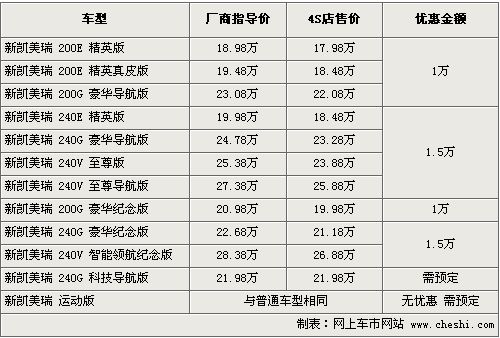 據(jù)4S店銷售人員介紹,凱美瑞在9月份推出了限量版兩款車型,其中包括了運(yùn)動版和紀(jì)念版,運(yùn)動版全系可以免費(fèi)升級運(yùn)動套件。如果夠買這款車的話需要提前預(yù)訂,價(jià)格和普通車型相同。車價(jià)方面優(yōu)惠幅度在1萬元-1.5萬元之間,入門級車型優(yōu)惠后也跌破了18萬元。