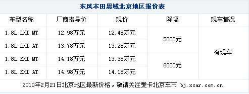 近日,從北京東風(fēng)Honda經(jīng)銷商處獲悉,目前思域LXI和EXI車型優(yōu)惠分別在5000元和8000元,優(yōu)惠幅度有所縮小。詳情請(qǐng)見下表: