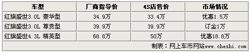紅旗轎車在中國可謂是國貨中的精品,紅旗盛世車型對大家來說更不會陌生。單憑曾經擔任過各大重要會議指定用車這一點,就證明了紅旗盛世的超高品質,更何況還一度加盟首汽國賓隊,作為中國的驕傲服務國際友人。一直以來一向以中央機關和外事接待任務為主的紅旗盛世,現(xiàn)在離老百姓的生活也很近,很多一直喜歡紅旗轎車的朋友都很關注盛世的市場情況。就此,網上車市走訪了一汽紅旗北京地區(qū)4S店,了解到紅旗盛世最新的市場情況,具體信息請參考下表: