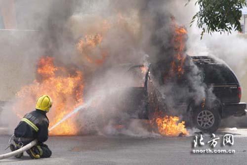 約5分鐘后,消防隊趕到用水槍將火撲滅。不過,發(fā)生自燃的汽車已經(jīng)報廢,無法修復(fù),幸運的是包括車主在內(nèi),現(xiàn)場沒有人員傷亡。