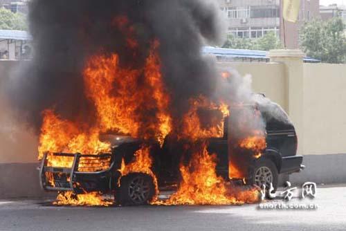 5月19日下午1點40分左右,在天津南開大學(xué)迎水道校區(qū)門口,一輛雪佛蘭開拓者SUV發(fā)生自燃。記者趕到現(xiàn)場時,現(xiàn)場濃煙滾滾,火勢已經(jīng)蔓延至大部分車體。大
