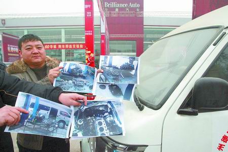 黃先生等人介紹,去年10月16日,他們花8.5萬元買了這輛車。1月9日下午,黃先生的同事胡先生開車時,途中突然熄火,再也打不著。當(dāng)晚11時,車輛被拖到廠家指定的維修地點——鄭州金客汽車銷售服務(wù)有限公司(以下簡稱金客維修)。“維修時先后換了倆師傅,拆開發(fā)動機,更換了部件也不管用!焙壬f,因為該車用的是玉柴發(fā)動機,隨后,金客維修聯(lián)系后將車送往該車發(fā)動機的特約維修店,那里的工人又檢查維修一番,還是沒修好。