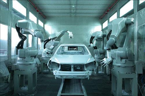 焊裝車(chē)間的機(jī)器人也讓我們眼前一亮。采用的設(shè)備主要有瑞典ABB公司生產(chǎn)的點(diǎn)焊機(jī)器人、涂膠機(jī)器人,日本大福生產(chǎn)的摩擦式車(chē)身儲(chǔ)備線、螺母自動(dòng)輸送機(jī)等世界先進(jìn)的設(shè)備。工作人員介紹,總焊線是柔性化生產(chǎn)線,一條線上能同時(shí)生產(chǎn)EC718/ EC718-RV兩個(gè)車(chē)型。焊裝工藝的關(guān)鍵質(zhì)量控制點(diǎn)的焊接都是由ABB提供的焊接機(jī)器人來(lái)完成的,所有夾具都是日本富士公司生產(chǎn)的。在這個(gè)車(chē)間里也看到了全國(guó)精密度最高的三坐標(biāo)測(cè)量?jī)x,是從意大利進(jìn)口的TORO測(cè)量機(jī)。它集開(kāi)發(fā)、檢測(cè)、統(tǒng)計(jì)分析于一體,是設(shè)備、夾具、檢具、單品零件、分總成零件及白車(chē)身總成各檢測(cè)系統(tǒng)的連接紐帶,確保了生產(chǎn)制造過(guò)程的整個(gè)系統(tǒng)數(shù)據(jù)的統(tǒng)一、精準(zhǔn),大大提高了整車(chē)的質(zhì)量檢測(cè)的精準(zhǔn)度,投入使用如此高級(jí)的國(guó)際化檢測(cè)設(shè)備是一個(gè)汽車(chē)廠家高度重視產(chǎn)品質(zhì)量的表現(xiàn)。