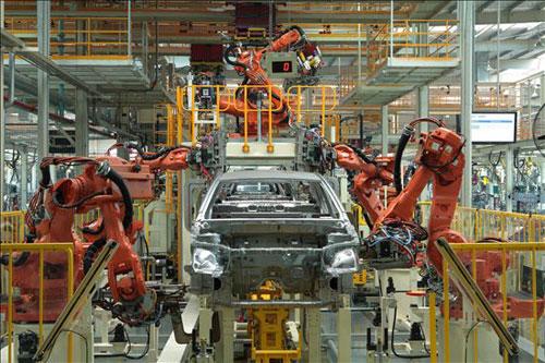 EC718生產(chǎn)線上的ABB焊接機(jī)器人