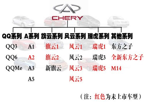 另外,奇瑞汽車(chē)銷(xiāo)售有限公司副總經(jīng)理劉宏偉先生還介紹了奇瑞品牌新產(chǎn)品規(guī)劃,未來(lái)將會(huì)有10款新車(chē)型推出。剛剛上市的風(fēng)云2三廂是風(fēng)云系列的首款車(chē)型,未來(lái)還會(huì)推出風(fēng)云1、風(fēng)云3和風(fēng)云5,分別為A00級(jí)、A級(jí)和B級(jí)車(chē)型。而旗云系列除了會(huì)推出旗云1以外,還會(huì)推出旗云2;瑞虎在今年年底將推出DR該款,未來(lái)還會(huì)推出瑞虎1和瑞虎5;另外,新一代東方之子和代號(hào)為B14的硬頂敞篷跑車(chē)也被列入新車(chē)規(guī)劃之中。