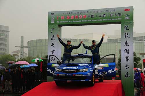 中新網(wǎng)11月16日電 11月15日,經(jīng)過三天的激烈角逐,2009年全國(guó)汽車?yán)﹀\標(biāo)賽(CRC)龍游拉力賽在霏霏細(xì)雨中落幕。上屆龍游站冠軍得主——斯巴魯中國(guó)拉力車隊(duì)澳大利亞籍外援車手迪恩•赫里基(Dean Herridge)再次奪冠。