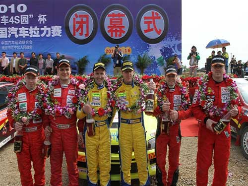 中新網(wǎng)5月17日電 2010年中國汽車?yán)﹀\標(biāo)賽(簡(jiǎn)稱CRC)南京站比賽5月16日下午在江蘇江寧圓滿落下帷幕,參賽的80余輛賽車也停下了轟鳴的引擎聲。在經(jīng)過兩天11個(gè)賽段的激烈爭(zhēng)奪后,東南汽車車隊(duì)、東南汽車萬宇車隊(duì)分別獲得亞、季獎(jiǎng)杯。這兩支由“東南汽車”冠名贊助的車隊(duì)均以優(yōu)異的成績(jī)完成了此次征戰(zhàn)。