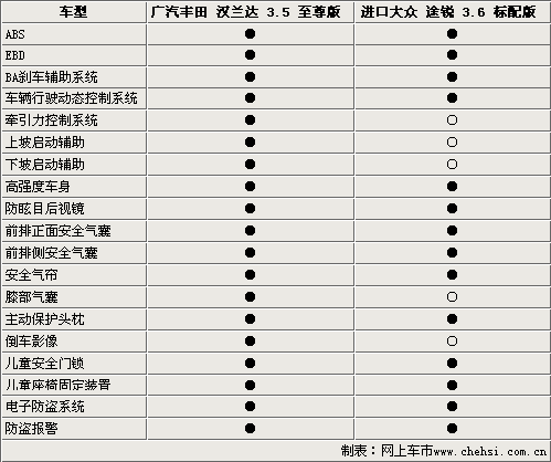 2009年5月25日,廣汽豐田的首款SUV車型漢蘭達正式下線,并宣布其正式上市。國產(chǎn)漢蘭達車型分為2.7和3.5兩個排量,共計10款車型,售價為24.88萬元-42.98萬元。漢蘭達在外型設計上突破了傳統(tǒng)的SUV設計風格的束縛,注重內(nèi)在的力量而非粗放的外表,在堅韌的軀殼之上更追求智能化,同時它也是豐田在中國地區(qū)投產(chǎn)的首款中級城市SUV車型。那么它的市場競爭力究竟如何?和市場上其它中級城市SUV車型相比究竟有那些優(yōu)勢呢?為了能讓您可以更加清楚地了解這款新車,我們選擇了市場銷售的進口大眾途銳與其來做一個全方位的對比。這兩款車型無論從車身尺寸,還是動力系統(tǒng)均屬于一個級別的SUV車型。