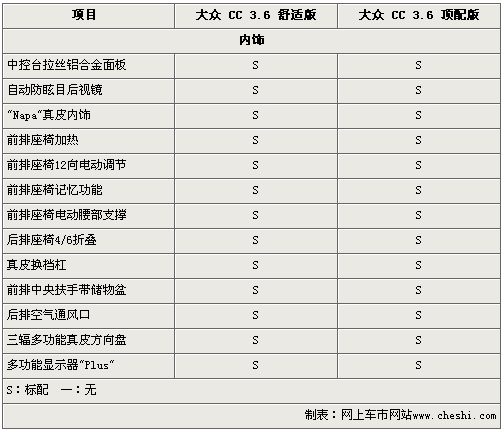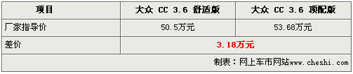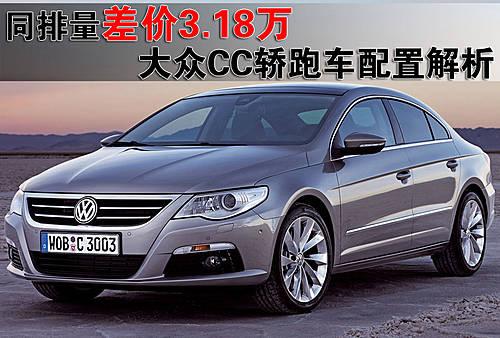 大眾CC轎跑車繼去年底廣州車展在國內首次亮相后,其全系兩款車型已于日前正式上市,售價為50.5萬元和53.68萬元。那么同樣搭載3.6升FSI引擎的大眾CC 舒適版和頂配版車型為什么差價高達3.18萬呢?通過對以下大眾CC轎跑車配置差異的解析,您也許會找到正確答案。