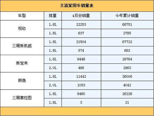 上表所列的都是銷售非;鸨闹髁骷矣棉I車。悅動剛剛在4月份拿到了單車銷量冠軍的頭銜,我們可以看到它超過兩萬輛的月銷量當(dāng)中1.8L車型僅僅貢獻(xiàn)了不到700輛,作用微乎其微;同樣月銷量超過兩萬輛的三廂凱越與悅動的情況如出一轍,1.8L車型同樣受到市場的冷落。