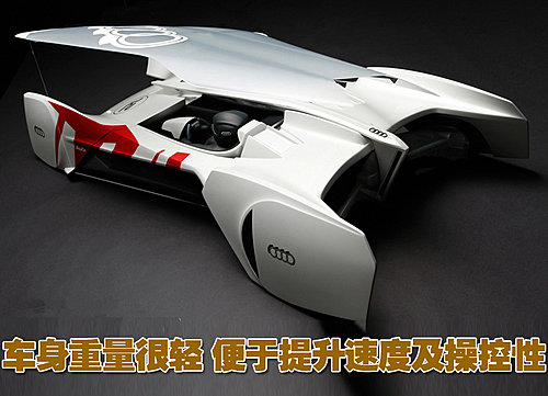 一個(gè)小型太陽(yáng)能飛艇將會(huì)輔助奧迪這款概念車(chē),為駕駛員提供路況信息,此外這個(gè)小型飛艇還配置攝像頭以及傳感器,目的是讓駕駛員能夠了解該車(chē)該車(chē)的速度以及整體車(chē)輛的性能狀況。與之同時(shí),為了進(jìn)一步提升該車(chē)的速度及操控性能,該車(chē)的車(chē)身重量也最大限度的有所降低。