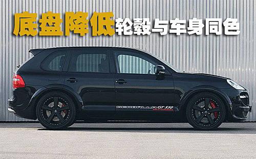 Gemballa版保時捷—卡宴GT500采用全黑色的車身色調(diào),22英寸直徑的輕量化輪轂輪轂也噴涂成了與車身同色,力求統(tǒng)一的色彩風(fēng)格。換裝了新設(shè)計(jì)前后保險杠以及后尾翼與側(cè)裙。