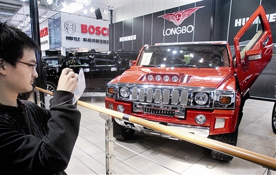 記者看到,展臺(tái)咨詢臺(tái)也變成了銷售臺(tái)。銷售員告訴記者,不管是奔馳商務(wù)車(chē)還是悍馬,雖然價(jià)格都在200萬(wàn)元以上,但銷量非常好,每天最少也能賣(mài)出5輛。