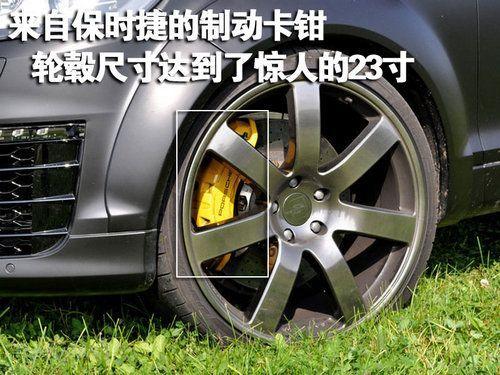 改裝后的奧迪Q7輪轂尺寸達到了23寸,輪胎規(guī)格為315/25 R23。如此驚人的尺寸讓我們很難再把眼前的Q7和“越野”二字聯(lián)系在一起,它儼然變成了一款公路上的速度機器。