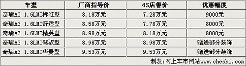 奇瑞A3自動(dòng)擋暫時(shí)無(wú)車(chē) 手動(dòng)擋優(yōu)惠近萬(wàn)元