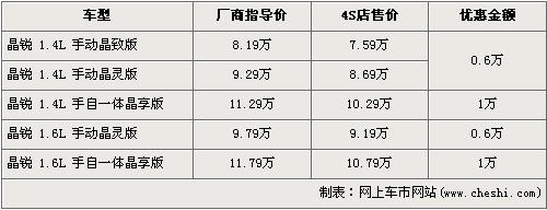 據(jù)記者走訪北京多家斯柯達(dá)經(jīng)銷店獲知,近期購買斯柯達(dá)晶銳的消費(fèi)者可以得到最高1萬元的優(yōu)惠。斯柯達(dá)晶銳的手動(dòng)擋車型相對優(yōu)惠幅度小一點(diǎn),但也達(dá)到了6000元。經(jīng)優(yōu)惠后,入門級的斯柯達(dá)晶銳1.4L手動(dòng)晶致版售價(jià)從8.19萬元下降到了7.59萬元。手自一體的車型優(yōu)惠金額達(dá)到了1萬元,全系最高配的1.6L手自一體晶享版售價(jià)從11.79萬元降到了10.79萬元。